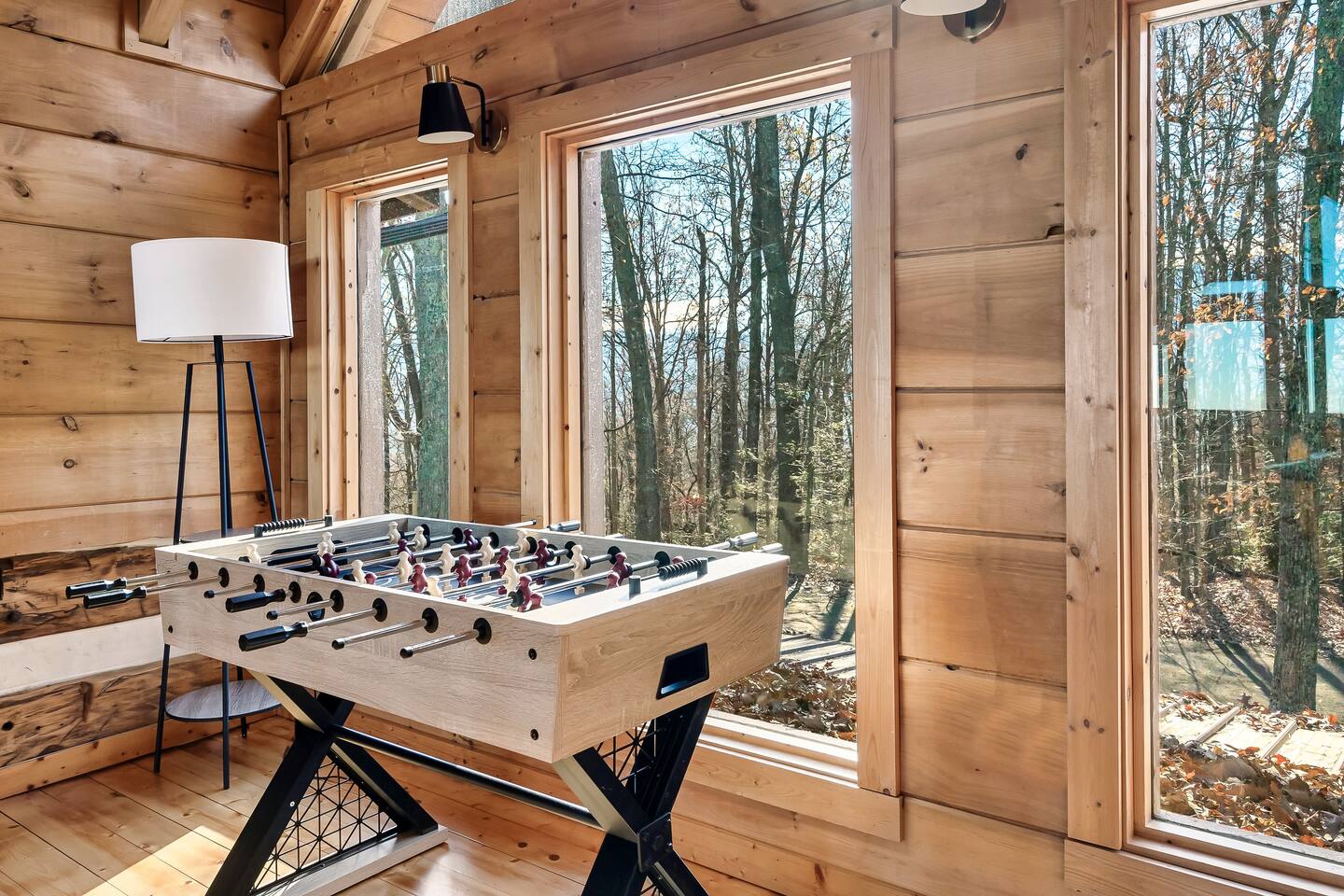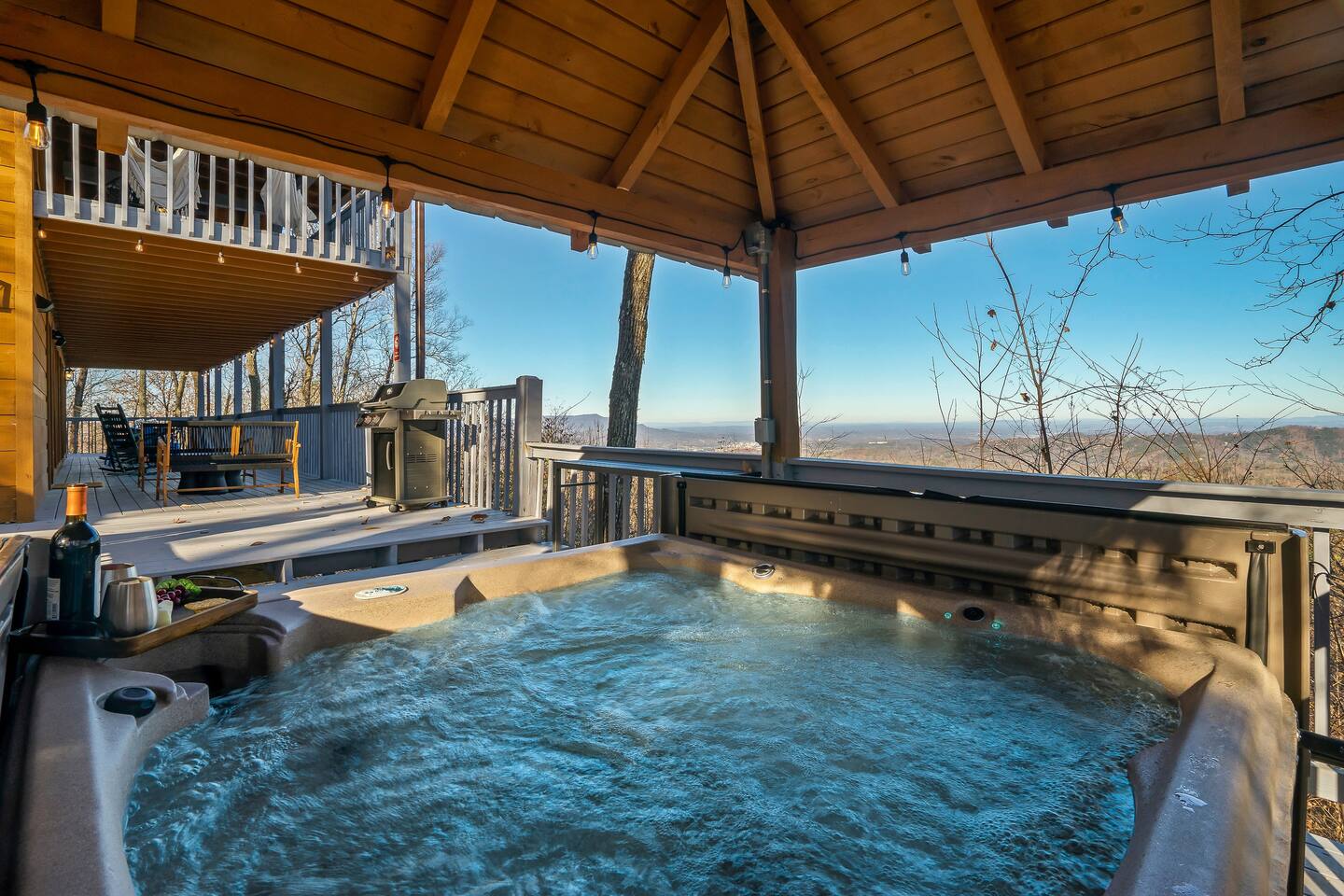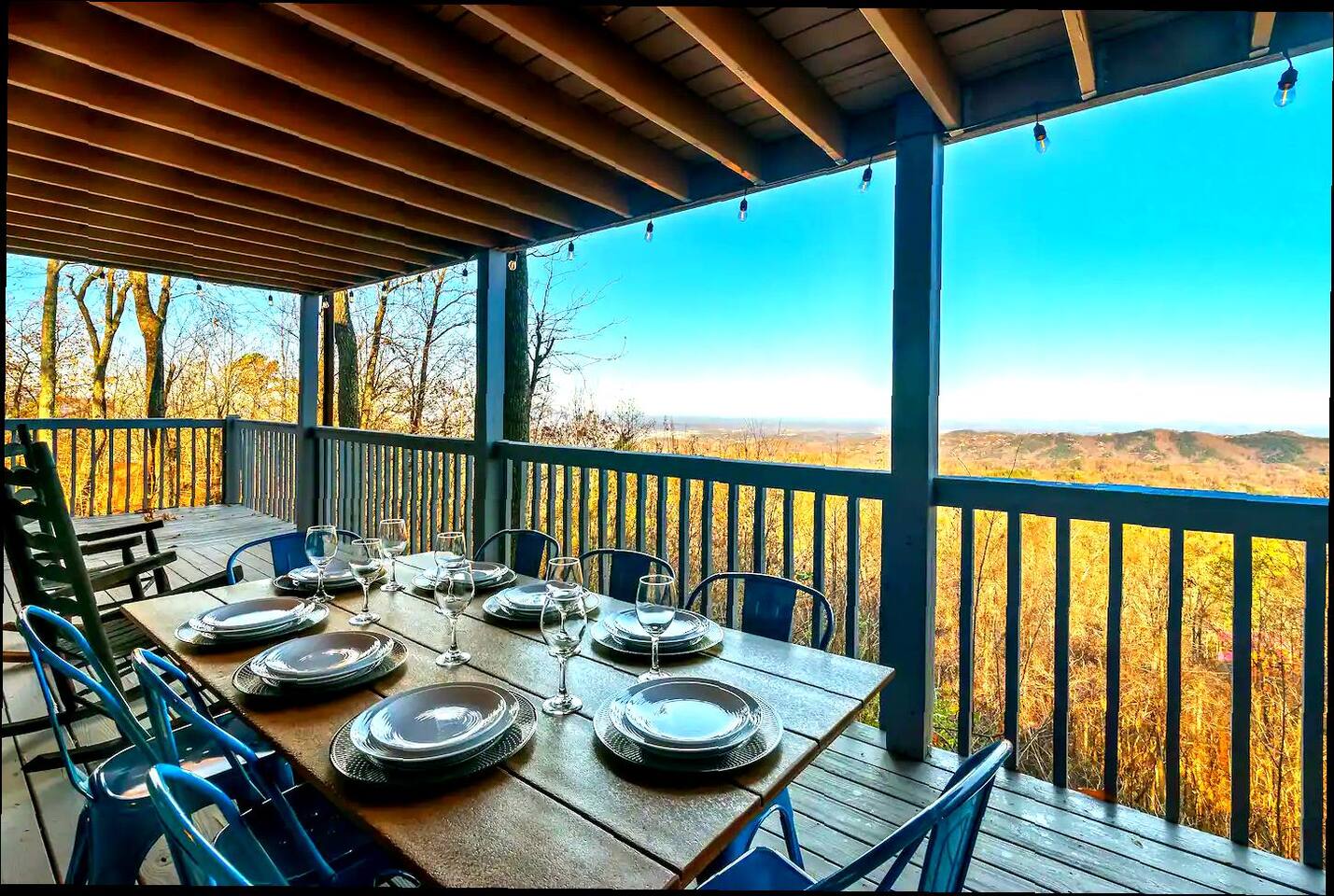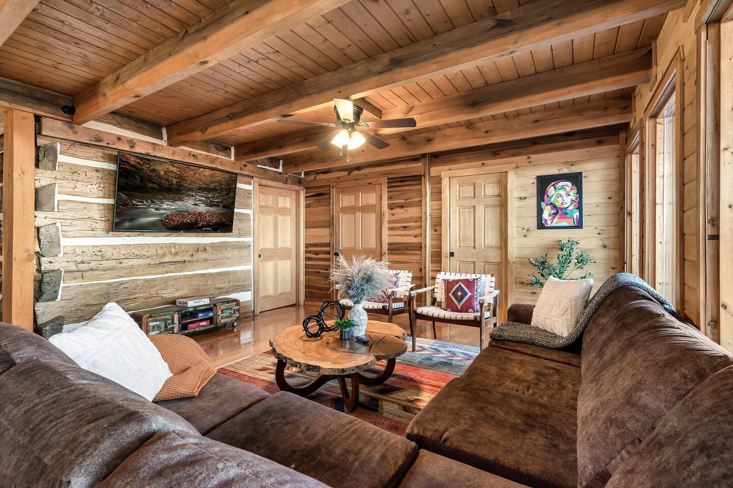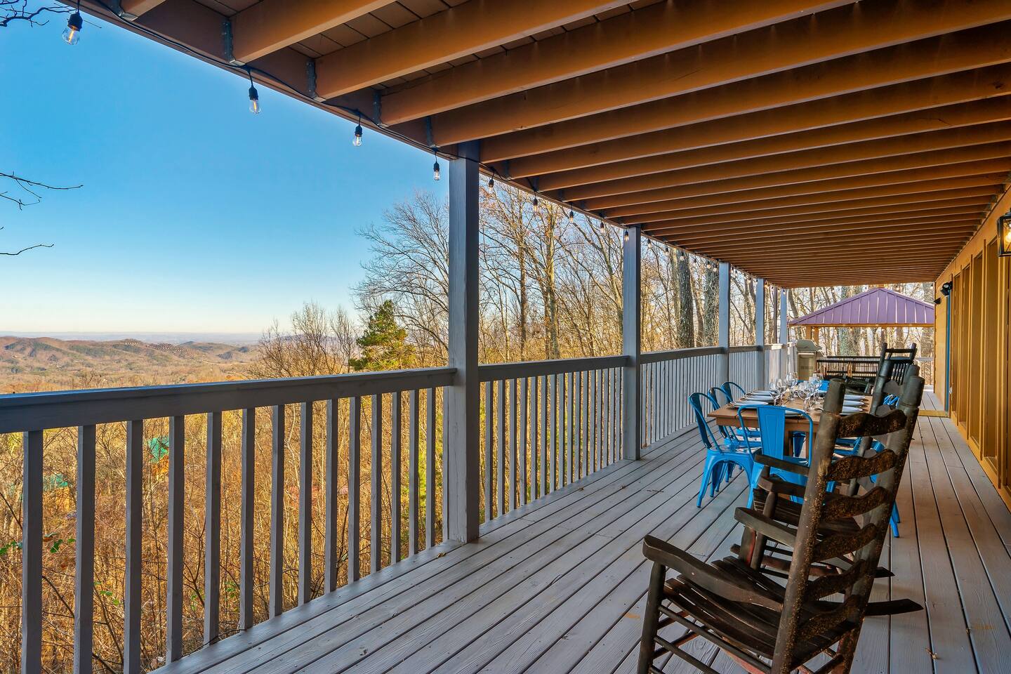 A whole cabin showcased by Wanderluxe Getaways!!!!!! KEY FEATURES: ☀ Extraordinary Views ☀ 5 bedrooms; 3 King beds, 2 Queen Beds, 2 Bunk Beds, 2 sleeper sofas ☀ Sleeps up to 20 ☀ 3 bathrooms ☀ Brand New Custom, fully equipped kitchen; new stainless steel oven, dishwasher and stove ☀ Coffee Bar ☀ Spacious living room; 65" HDTV, sectional sofa with pull out couch ☀ 2 full-length wrap around decks ☀ Fire Pit ☀ Hot tub ☀ WiFi throughout ☀ Game room ☀ Pool Table ☀ Arcade Games ☀ Swing Chairs