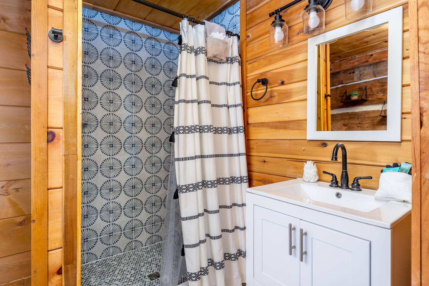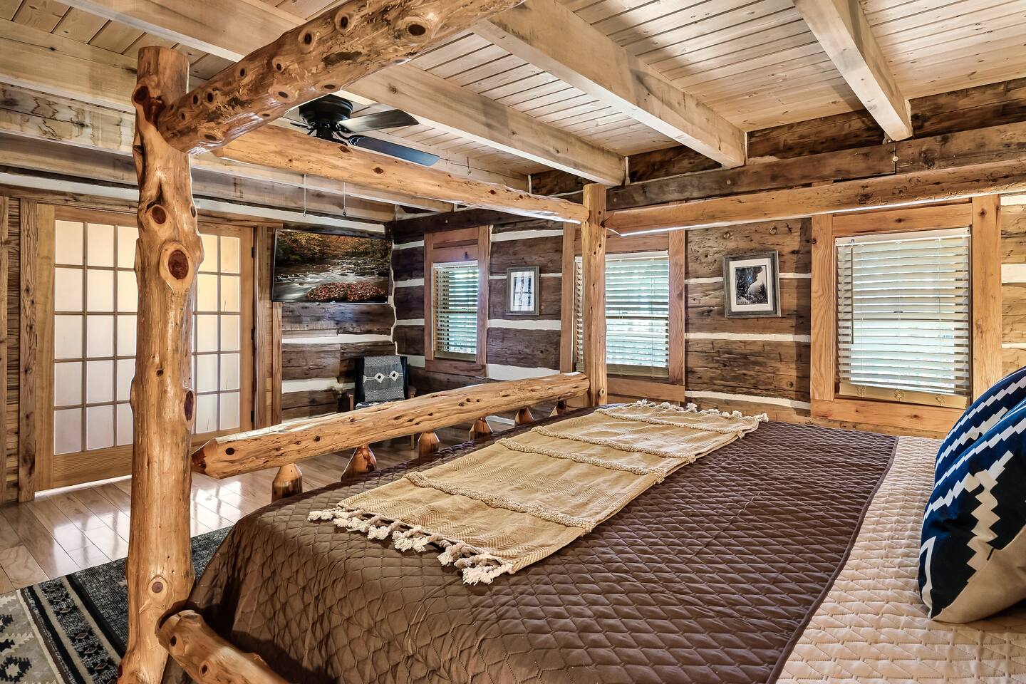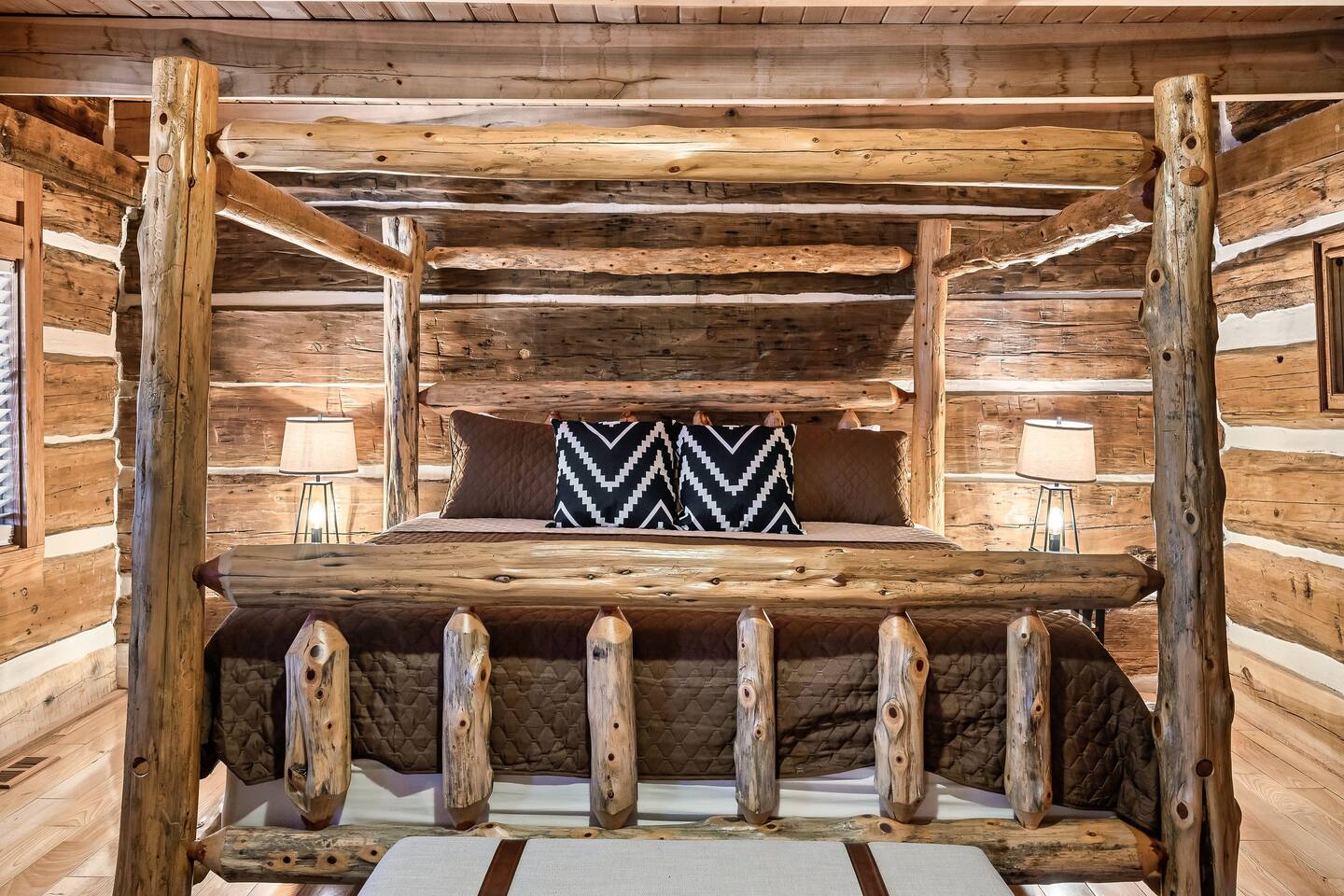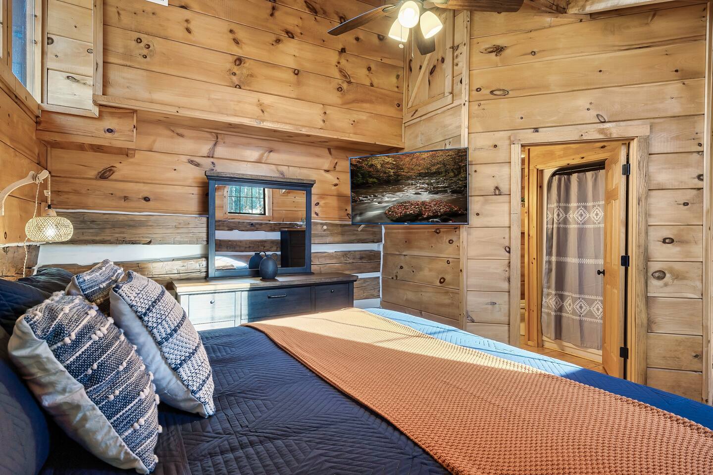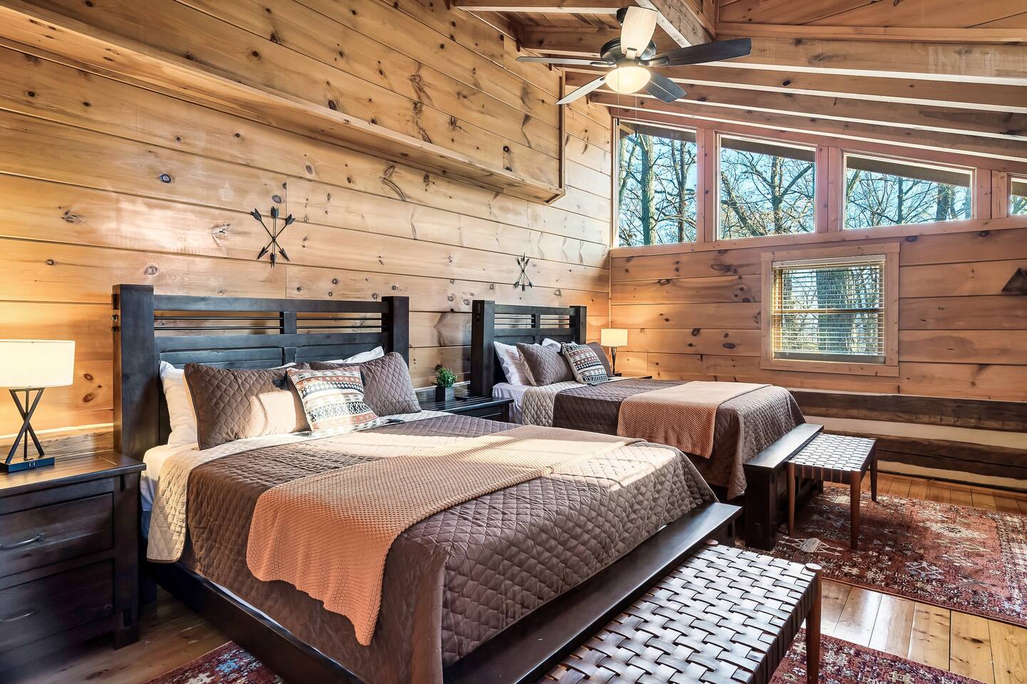 A whole cabin showcased by Wanderluxe Getaways!!!!!! KEY FEATURES: ☀ Extraordinary Views ☀ 5 bedrooms; 3 King beds, 2 Queen Beds, 2 Bunk Beds, 2 sleeper sofas ☀ Sleeps up to 20 ☀ 3 bathrooms ☀ Brand New Custom, fully equipped kitchen; new stainless steel oven, dishwasher and stove ☀ Coffee Bar ☀ Spacious living room; 65" HDTV, sectional sofa with pull out couch ☀ 2 full-length wrap around decks ☀ Fire Pit ☀ Hot tub ☀ WiFi throughout ☀ Game room ☀ Pool Table ☀ Arcade Games ☀ Swing Chairs